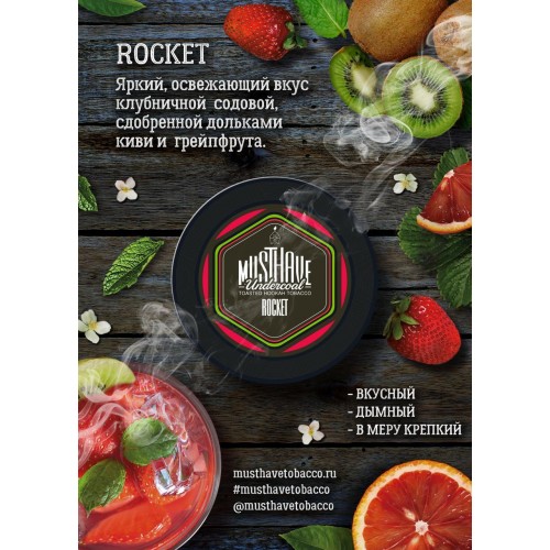 Табак для кальяна Must Have 25 гр. Rocket (Мастхев Ракета) супер яркий, освежающий вкус клубничной содовой с дольками киви и грейпфрута.